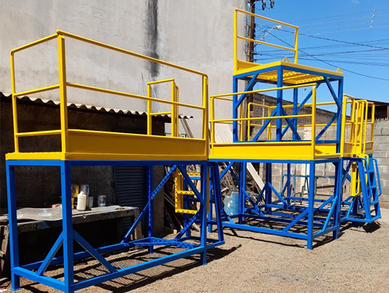 Plataformas industriais com regulagem de altura – Estruturas ajustáveis para facilitar operações de montagem e manutenção.
